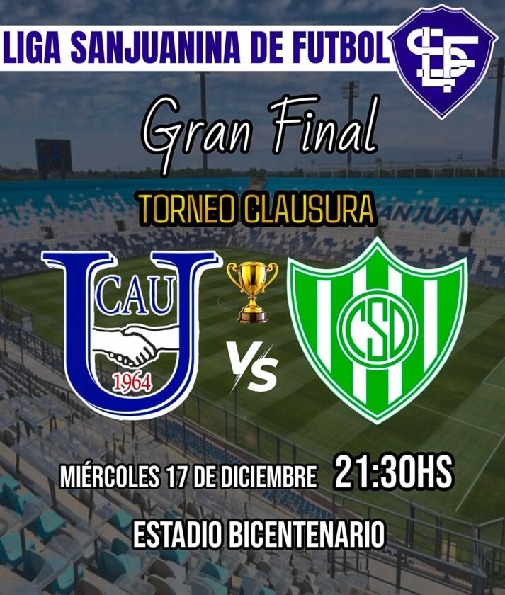Liga Sanjuanina de Futbol dio toda la información de cara a la final entre puyutanos y azules, que determinará al campeón del clausura, además de la final en cuarta división.