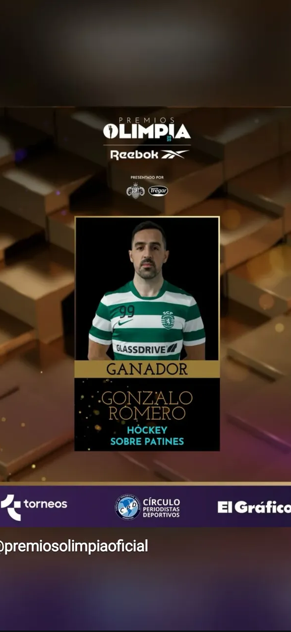 El sanjuanino Gonzalo «El Nolo» Romero fue distinguido este lunes con el Olimpia en la categoría Hockey sobre Patines, en el marco de la entrega de los Premios Olimpia 2025 que organiza el Círculo de Periodistas Deportivos.