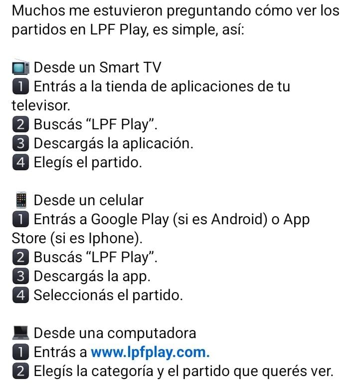 De la siguiente manera es para poder verlo por la nueva plataforma de la AFA: